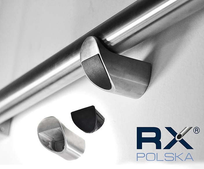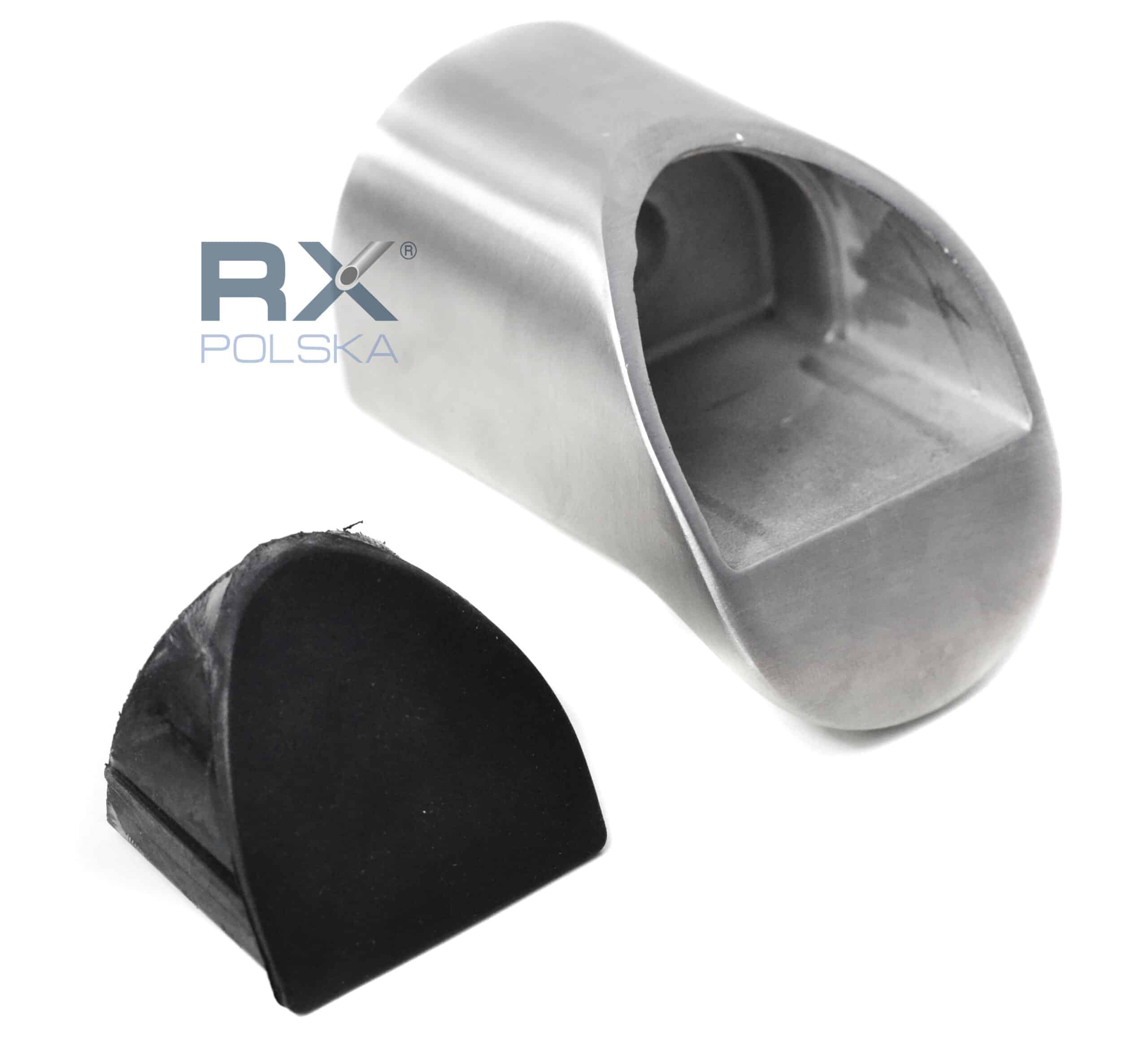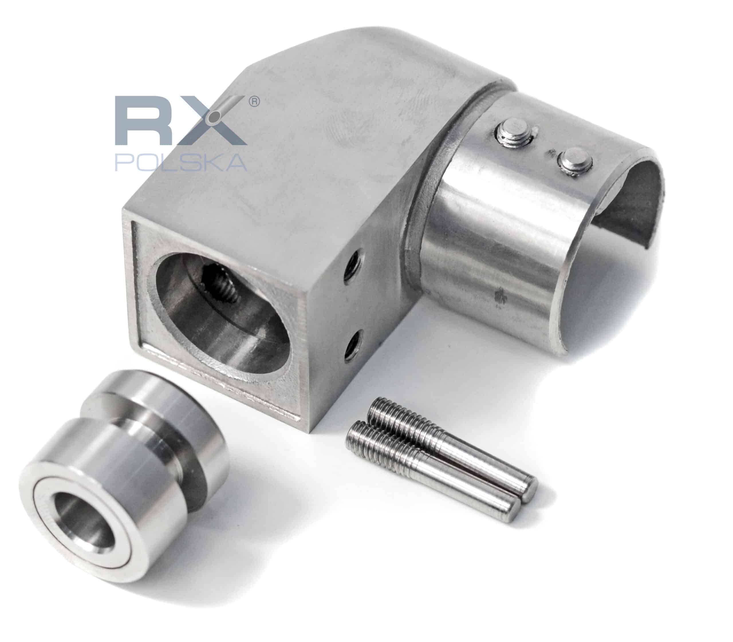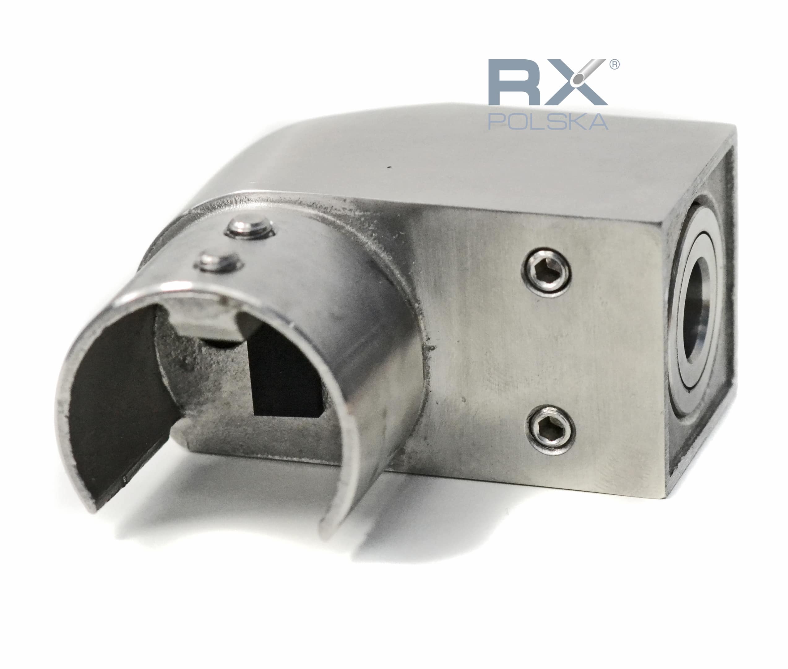 - Hoveddelen av festet (laget av en stålstøping) har i seg selv en flens for å feste rekkverket på glasset og hullet for å koble til hylsen