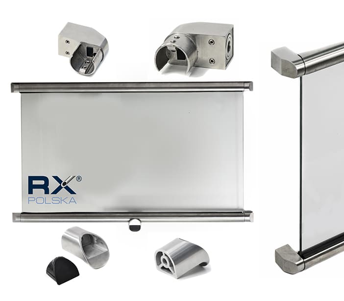 - Lineært feste basert på et 42,4 mm rekkverk påført glasset