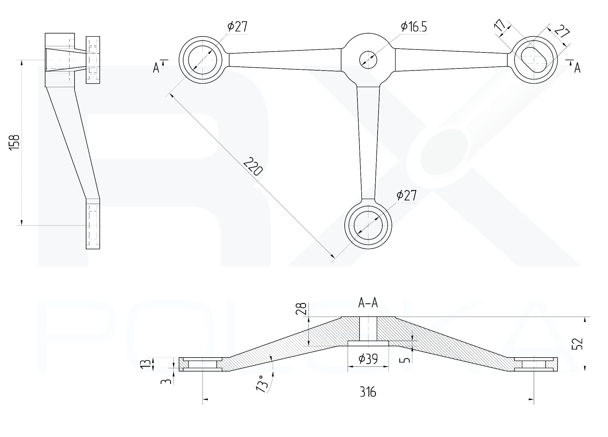 - Avstand mellom aksene til hullene som fester spissholderne i det likebenede trekantsystemet 220mm / 220mm / 310mm