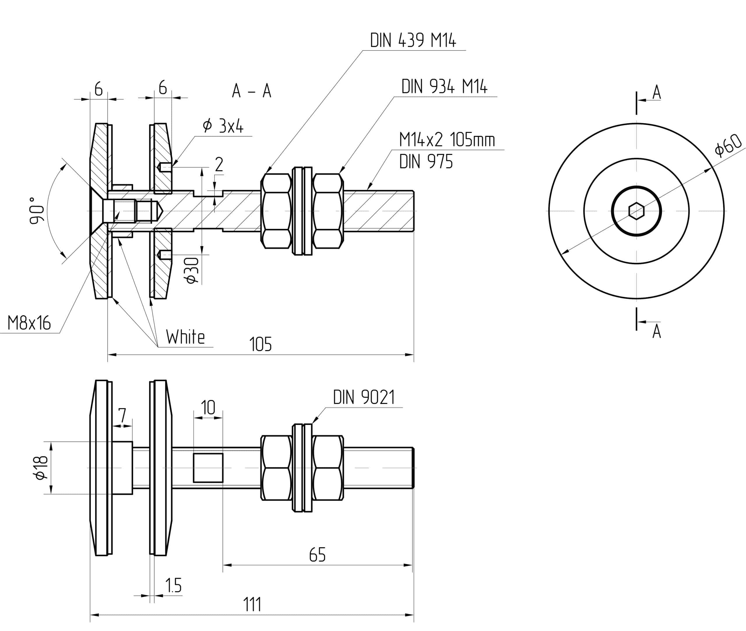 - Montering til strukturen med 1x mutter DIN 934 M14 / 1x mutter DIN 439 M14