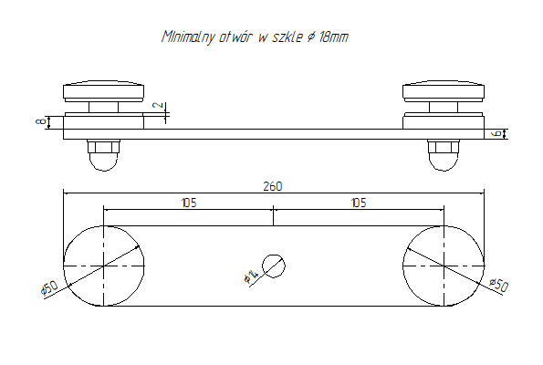 Punktfeste for glass – 50 mm med dekket mutter, AISI 304, SATIN