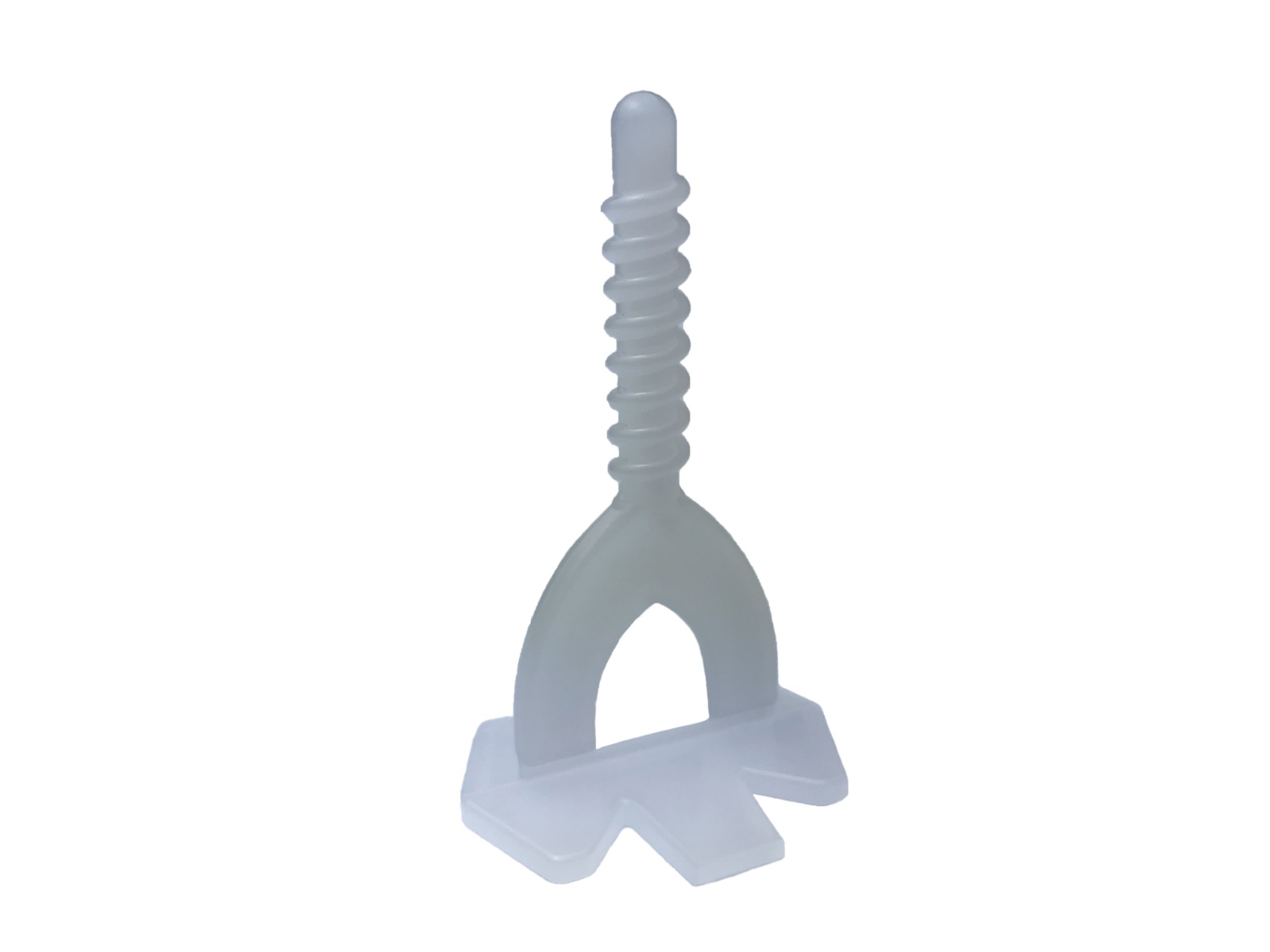 Dette nivelleringsklipset er en del av et nivelleringsystem for flislegging. Det gir en fugebredde på 2 mm.